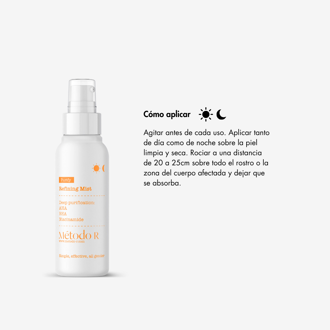 Refining Mist / Bruma Purificadora es un spray clínico, diseñado con rigor científico para simplificar rutinas y actuar de forma integral sobre pieles grasas o con tendencia acneica.